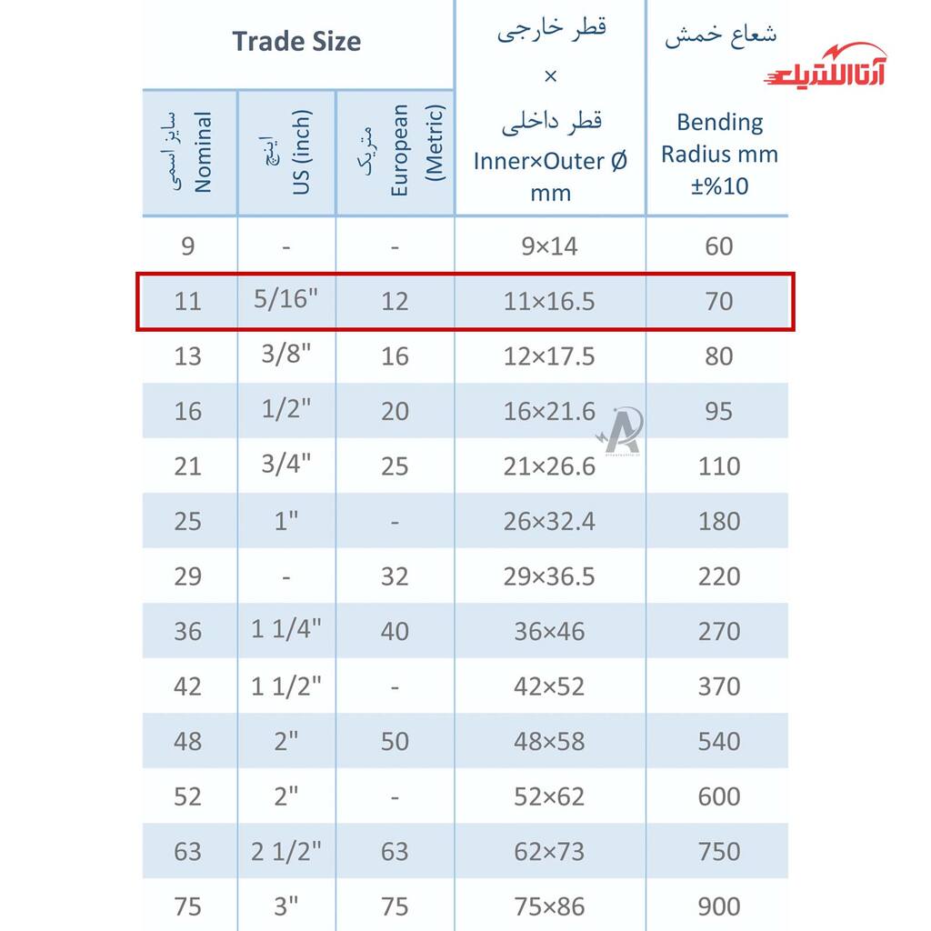 | قطر داخلی لوله (سانتیمتر) | 11 |
