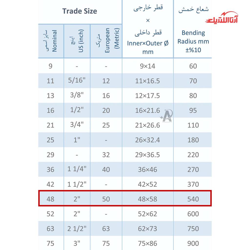 | قطر داخلی لوله (سانتیمتر) | 48 |