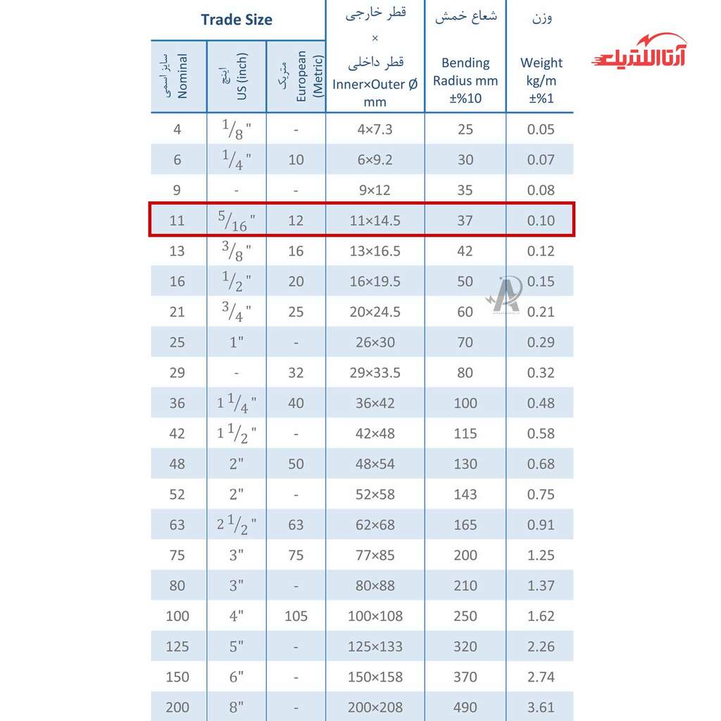 | قطر داخلی لوله (سانتیمتر) | 11 |