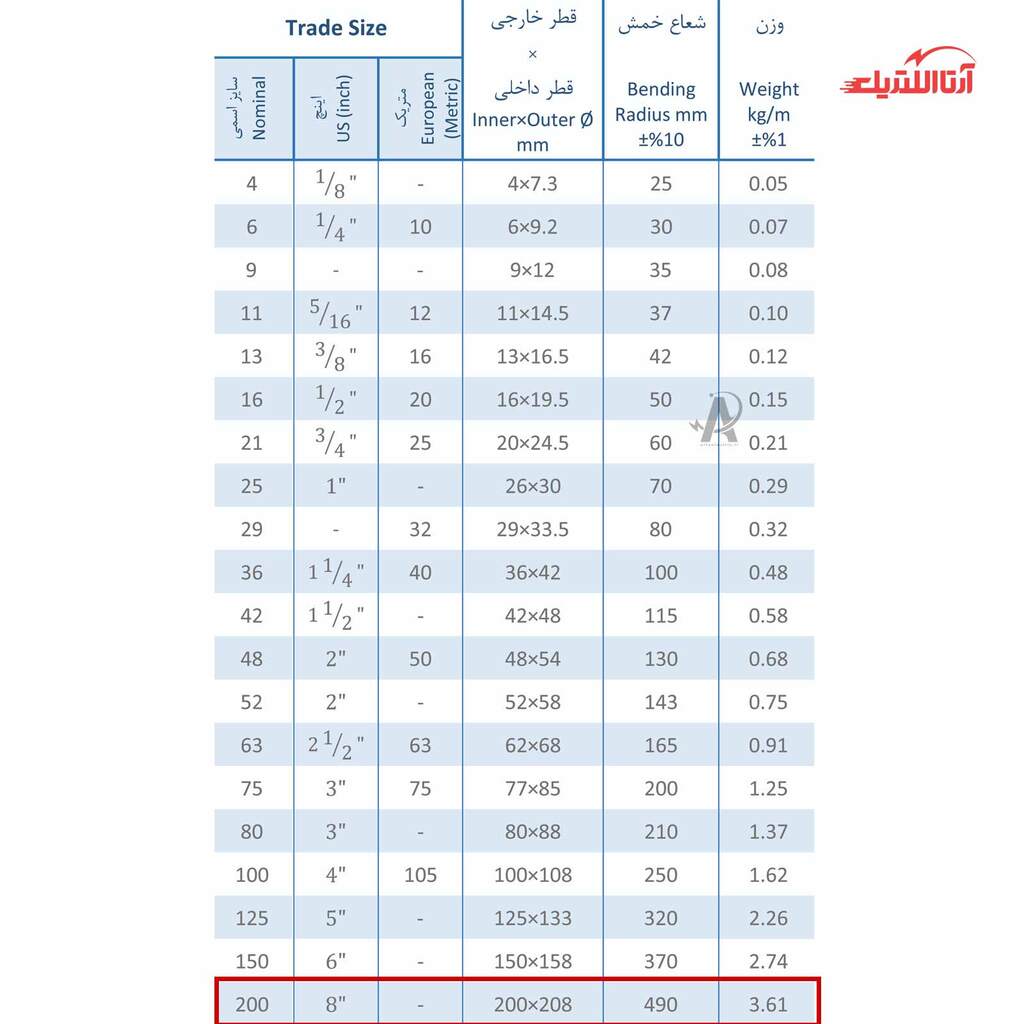 | سایز اسمی | 200 |