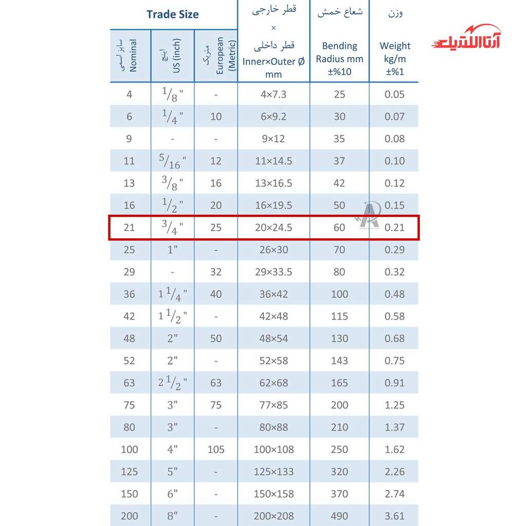 | سایز اسمی | 21 |