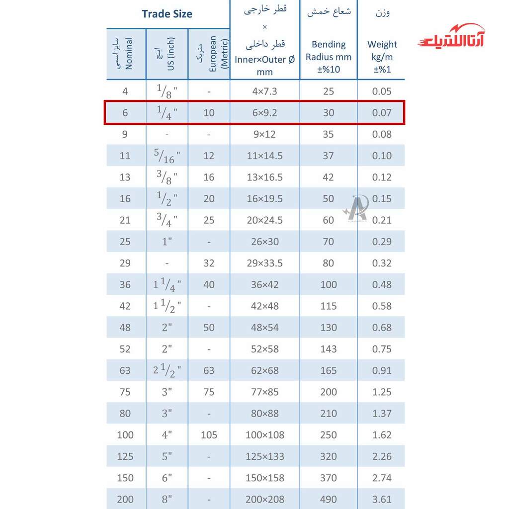 | قطر داخلی لوله (سانتیمتر) | 6 |