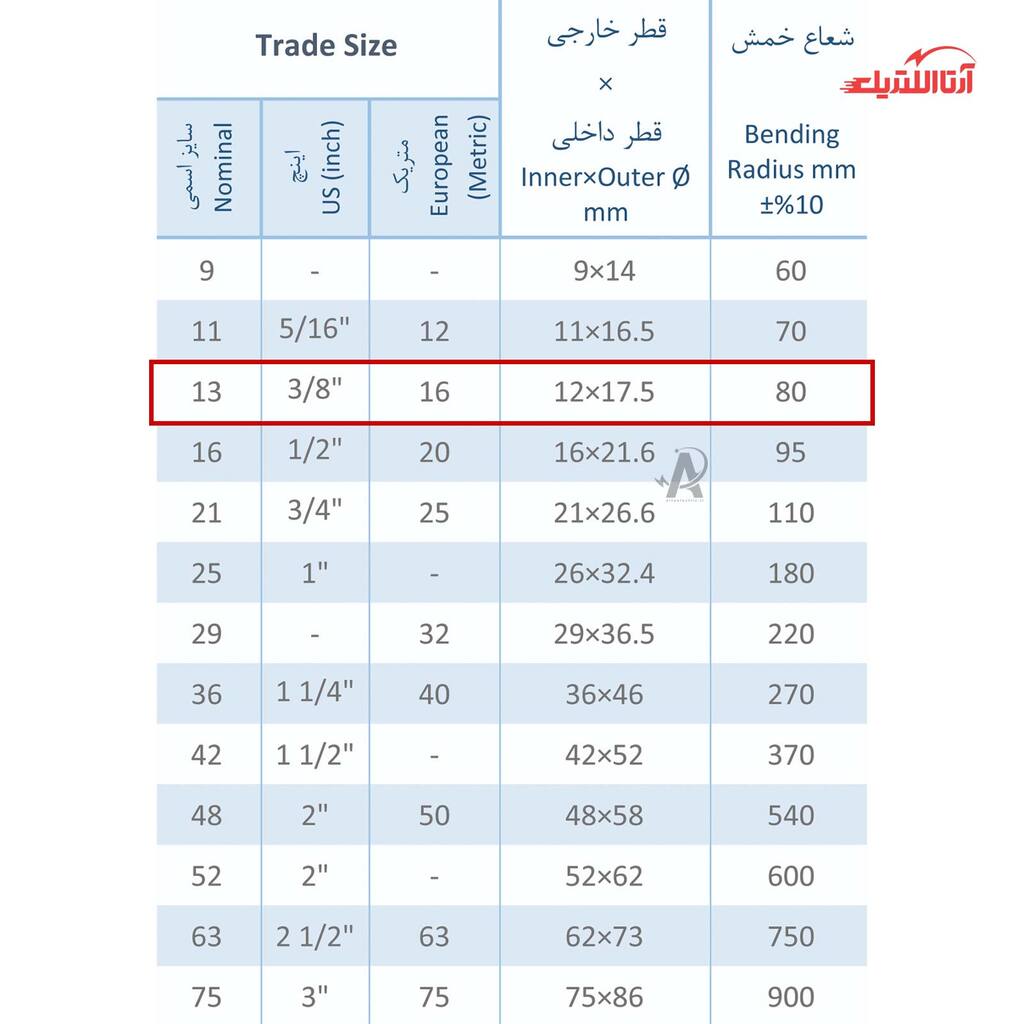 | سایز اسمی | 13 |