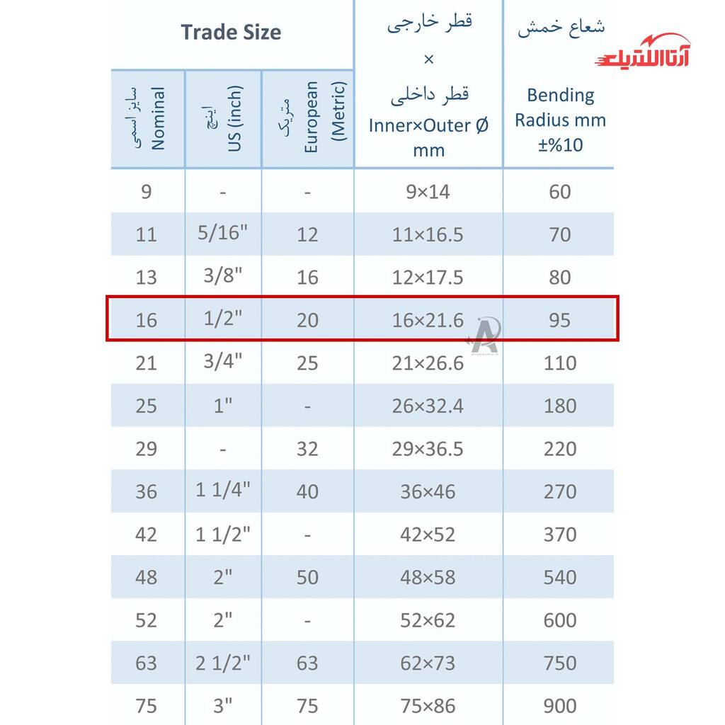 | سایز لوله (اینچ) | 0.5 |