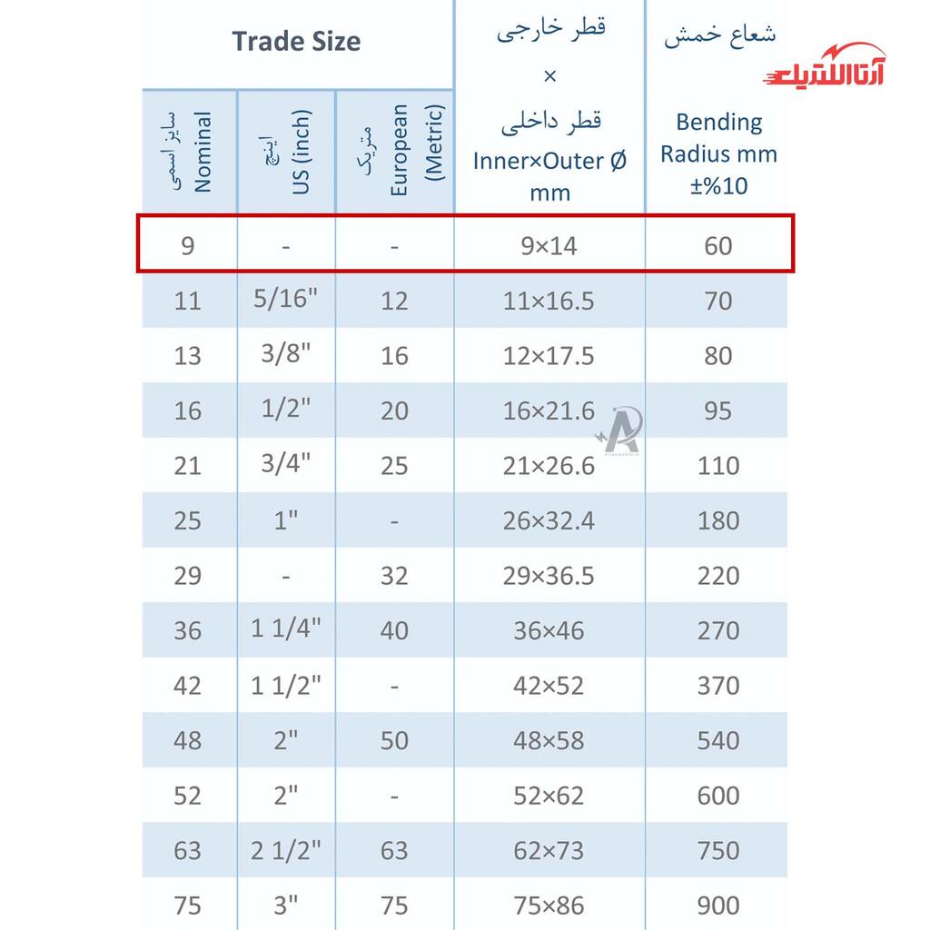 | سایز اسمی | 9 |