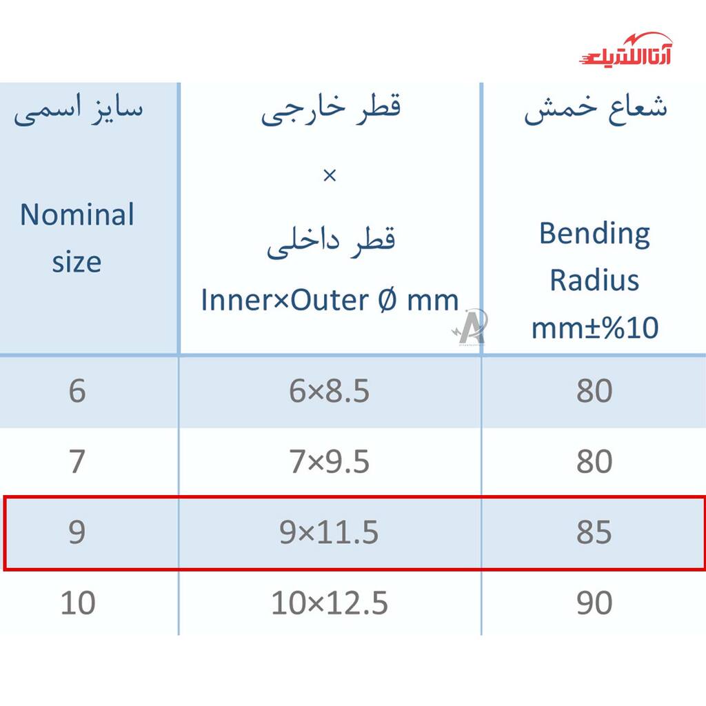 لوله فلکسی بند تلفنی سایز 9 رهورد خراسان تیپ FC2T