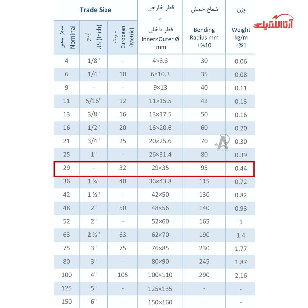 لوله فلکسی روکشدار سایز 29 رهورد خراسان تیپ FC1P