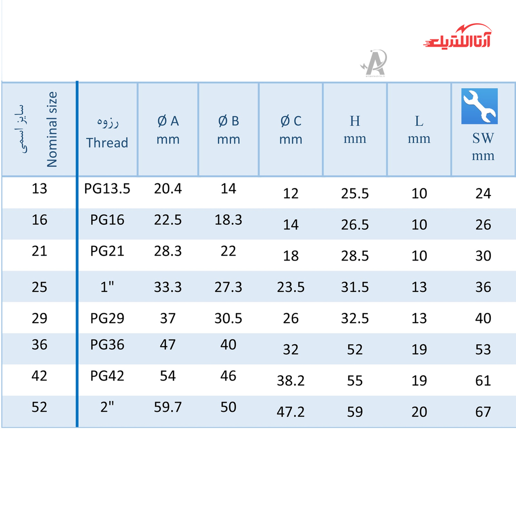 سایز رزوه