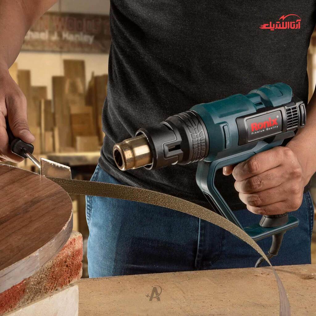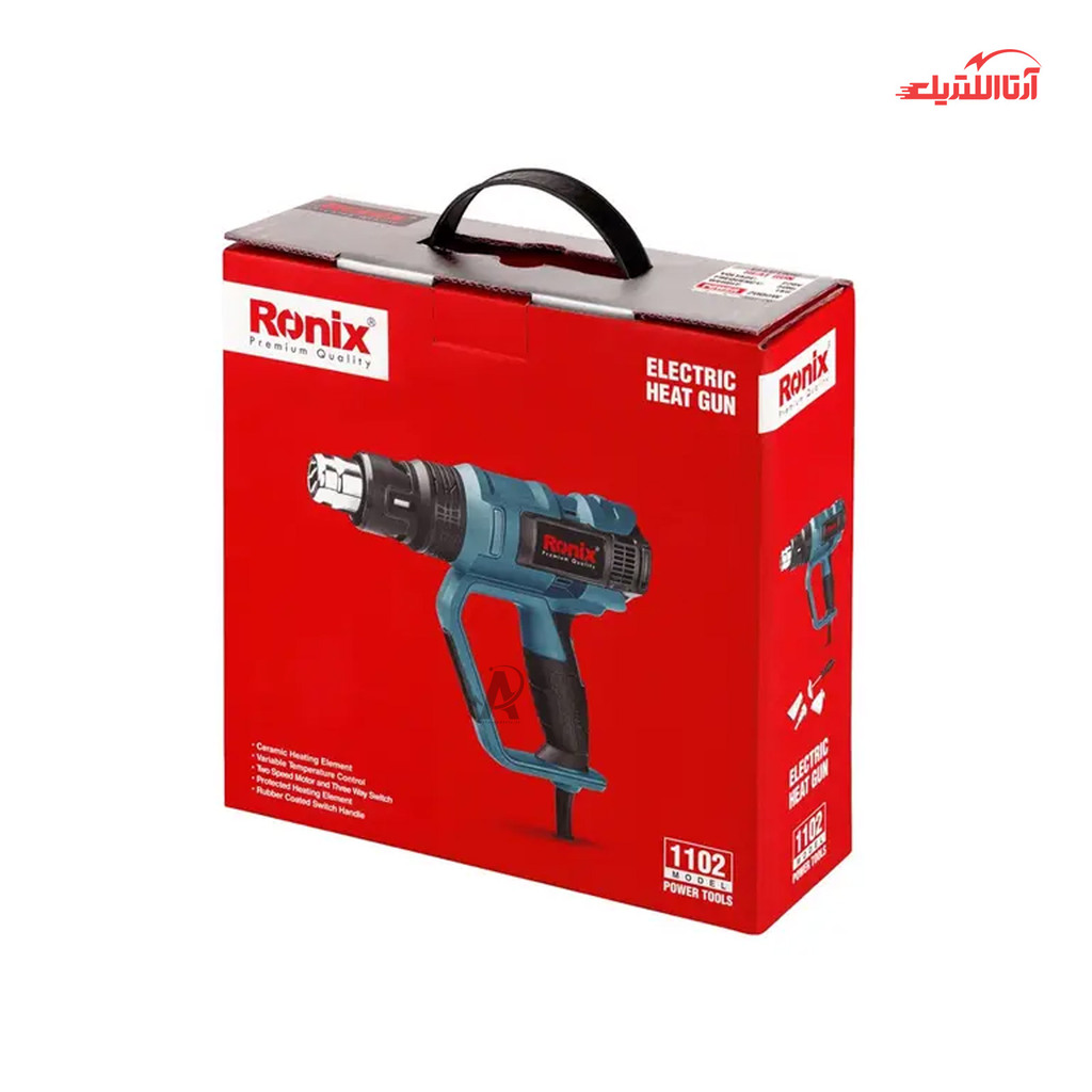 سشوار صنعتی دیمردار 2000 وات رونیکس مدل 1102، یکی از محصولات باکیفیت مجموعه رونیکس است که از قطعات و تجهیزات صنعتی قدرتمندی تولید می‌شود و برای کاربری‌های سخت و طولانی، بسیار مناسب است. توان موتور این دستگاه 2000 وات بوده و برای ایجد دمایی بالغ بر 600 درجه سانتی‌گراد، طراحی و ساخته شده است. فن این سشوار طوری طراحی شده که می‌تواند جریان هوایی بیش از 500 لیتر بر دقیقه را ایجاد کند. وجود دیمر در این دستگاه، به شما این قابلیت را می‌دهد تا دمای سشوار را بین 50 تا 600 درجه سانتی‌گراد، تنظیم کنید. جریان هوای خروجی این دستگاه نیز به وسیله کلید مربوطه در سه حالت زیر تنظیم می‌شود.