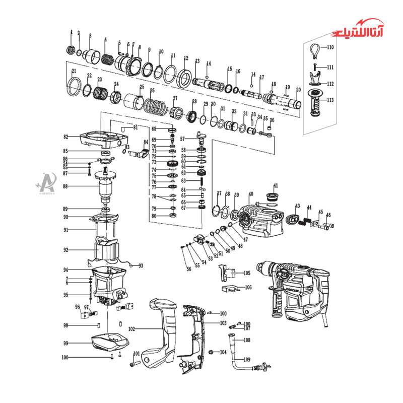 - مجهز به سیستم 4 شیار SDS-PLUS