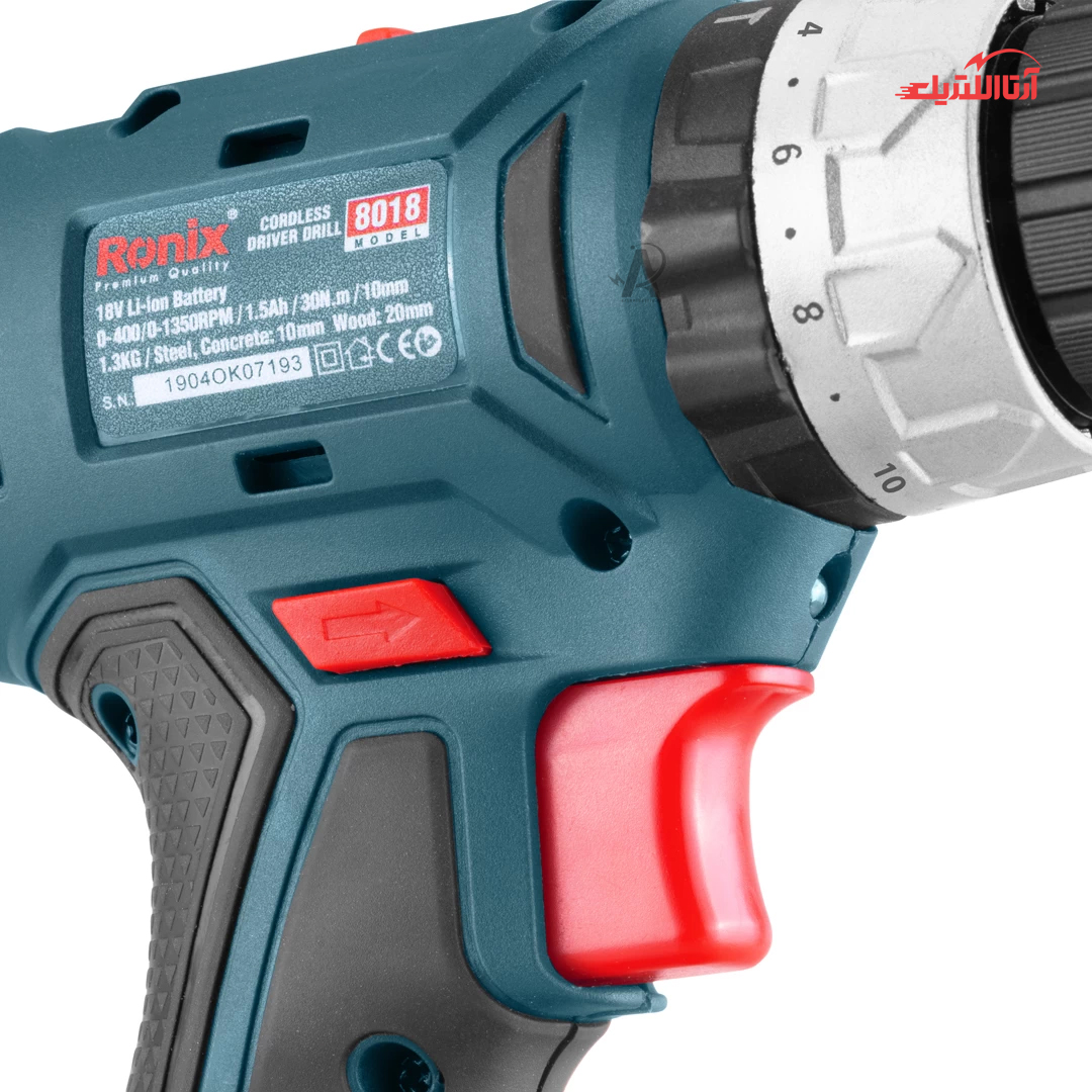 دریل پیچگوشتی چکشی شارژی 18 ولت رونیکس مدل 8018، از تجهیزات صنعتیای تشکیل شده که توسط تکنولوژیهای روز دنیا بررسی و تولید شدهاند. محصول مذکور دارای موتوری قدرتمند با گیربکس دوسرعته و ولتاژ باتری 18 ولت میباشد که دور گردشی معادل 0 تا 400 و 0 تا 1500 دور بر دقیقه به صورت متغیر دارد که میتواند به سطوح چوبی تا عمق 20 میلیمتر و به سطوح فلزی و بتنی تا عمق 10 میلیمتر نفوذ کند. از ویژگیهای این دریل پیچگوشتی شارژی میتوان به دارا بودن کلید تنظیم سرعت در دو حالت و کلید چپگرد و راستگرد اشاره کرد که البته تمامی این کلیدها ضدگردوغبار میباشند.