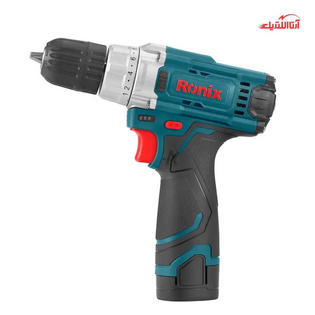 از ویژگی‌های این دریل پیچ‌گوشتی شارژی می‌توان به دارا بودن کلید تنظیم سرعت در دو حالت و کلید چپگرد و راستگرد اشاره کرد که البته تمامی این کلیدها ضدگردوغبار می‌باشند. در هنگام طراحی و ساخت این دریل پیچ‌گوشتی، به ارگونومی و راحتی استفاده از آن توجه ویژه‌ای شده و بدنه محصول سبک در نظر گرفته شده است. نوع سه نظام استفاده شده در دریل پیچ‌گوشتی شارژی رونیکس، اتوماتیک دوتکه 10 میلی‌متری بوده و همچنین دستگاه، با باتری لیتیوم یون 12 ولت 1.5 آمپرساعتی کار می‌کند.