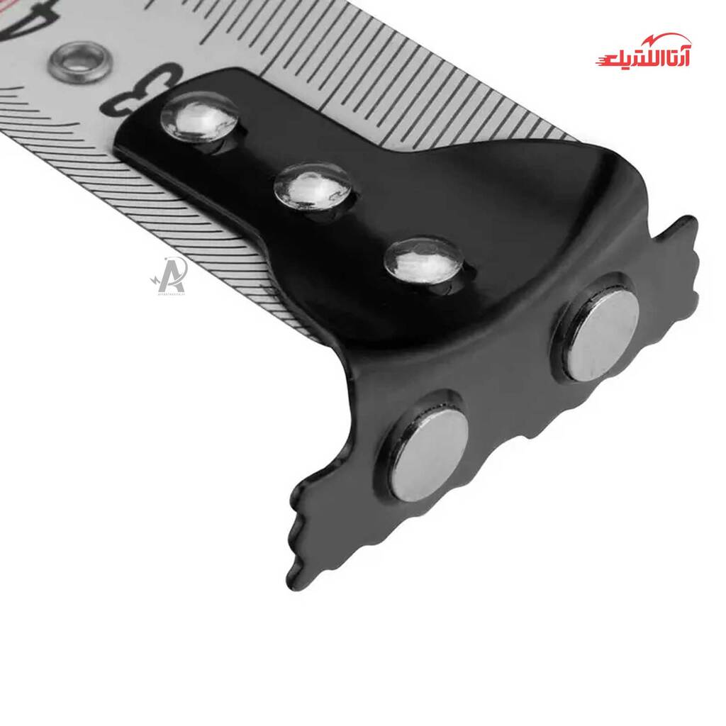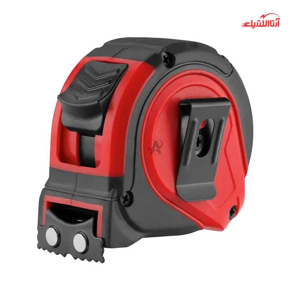 تیغه آن با روکشی نایلونی پوشیده شده و با داشتن اعدادی کاملا خوانا، استفاده را برای کاربران بسیار ساده کرده است. در ساختار این محصول گیرهای فلزی در نظر گرفته شده که کاربران بتوانند به راحتی آن را به کمربند خود بیاویزند. داشتن قلاب آهنربایی دوطرفه نیز از دیگر ویژگیهای منحصربهفرد این محصول است. طول این متر روکشدار، 5.5 متر بوده و عرض آن 25 میلیمتر است. تیغه به کار رفته در این متر، از جنس کربن استیل بسیار مقاوم به همراه فنری مستحکم است که در برابر سایش مقاومت بالایی دارد.