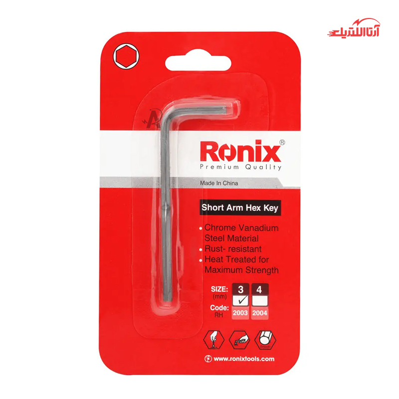 آچار الن تک 3 میلیمتری رونیکس مدل RH-2003، یکی از این محصولات است که دارای طراحی L ال شکل و سری ۶ ضلعی میباشد. این محصول که سفت و شل کردن پیچهای آلن استفاده میشود، از آلیاژ وانادیوم و کروم ساخته شده که موجب کیفیت بالا و مقاومت بدنه آن شده است. همچنین سطح این محصول از اکسید سیاه پوشیده شده تا از زنگزدن آن جلوگیری شود.
