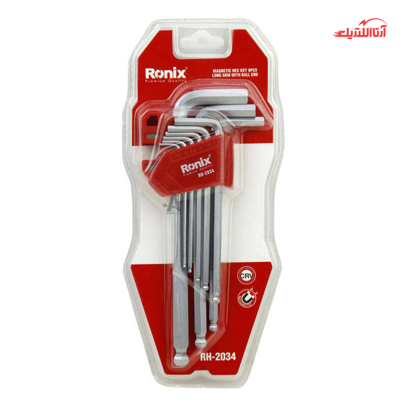 مجموعه 9 عددی آچار آلن بلند شش گوش رونیکس مدل RH-2034، یکی از این محصولات است که دارای 9 عدد آچار آلن کاربردی در سایزهای 1.5، 10، 2، 2.5، 3، 4، 5، 6، 8 و سری ۶ ضلعی می‌باشد. این محصول که سفت و شل کردن پیچ‌های آلن استفاده می‌شود،‌ از آلیاژ وانادیوم و کروم ساخته می‌شود. این آلیاژ موجب کیفیت بالا و مقاومت بدنه آن شده است.