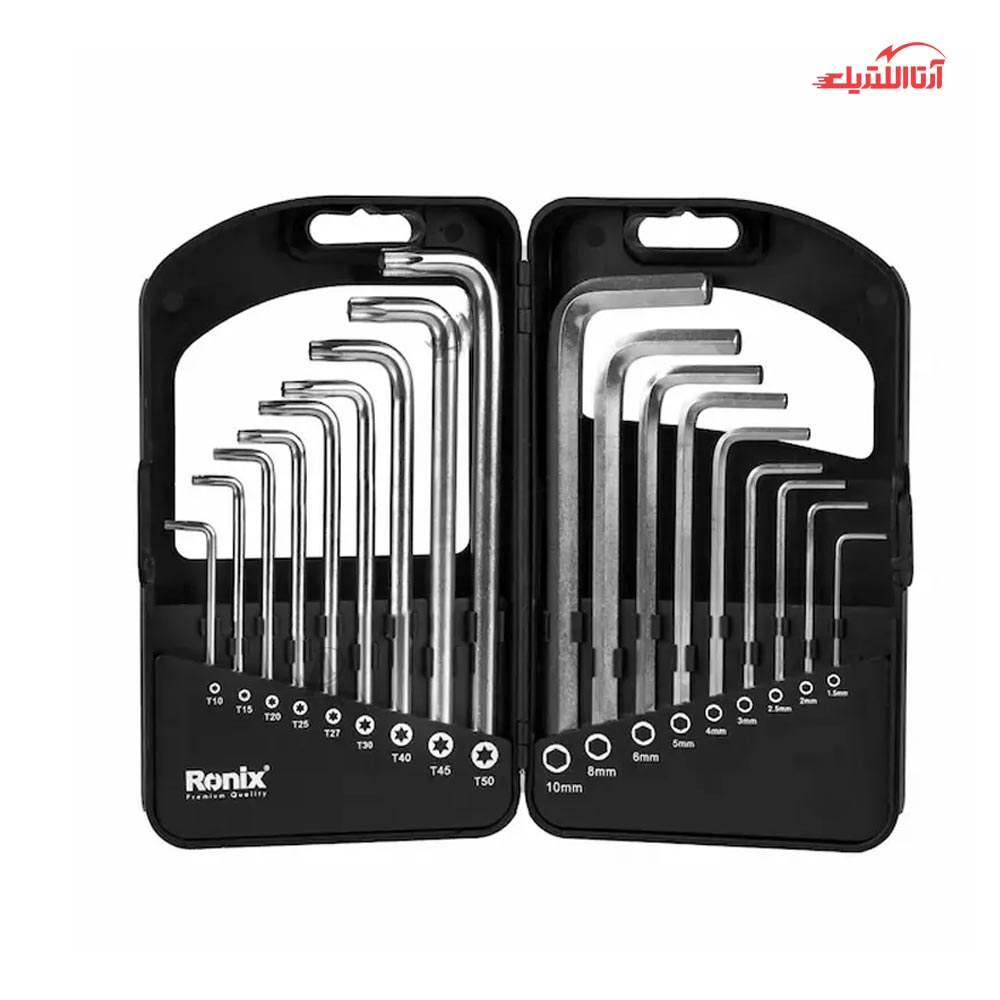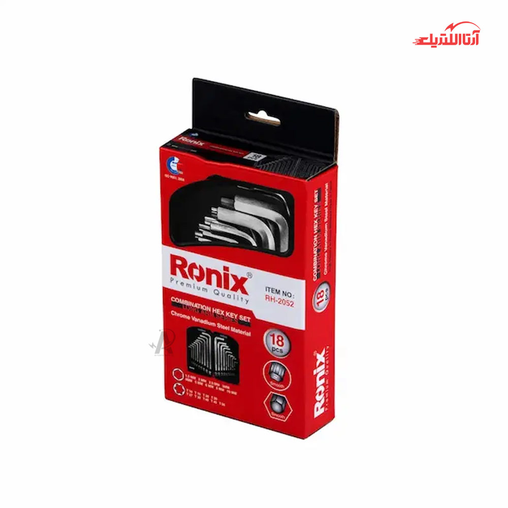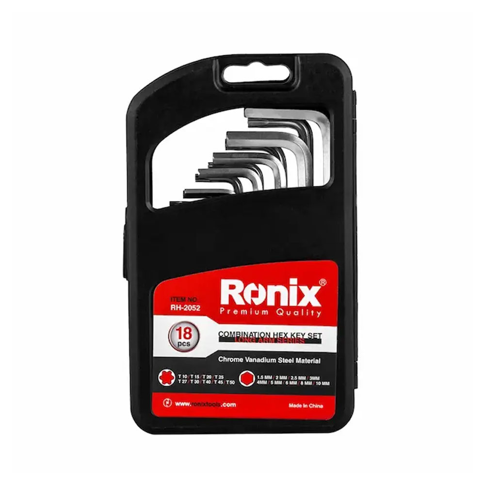 مجموعه 18 عددی آچار آلن بلند رونیکس مدل RH-2052، یکی از این محصولات است که دارای 9 آچار آلن شش گوش در سایزهای 1.5، 2، 2.5، 3، 4، 5، 6، 8 و 10 میلی متر و 9 آچار ستاره ای در سایزهای T 10، T 15، T 20، T 25، T 27، T 30، T 40، T 45 و T 50 میباشد. این محصول که سفت و شل کردن پیچهای آلن استفاده میشود، از آلیاژ وانادیوم و کروم ساخته میشود. این آلیاژ موجب کیفیت بالا و مقاومت بدنه آن شده است. همچنین سطح این محصول از اکسید سیاه پوشیده شده تا از زنگزدن آن جلوگیری شود.