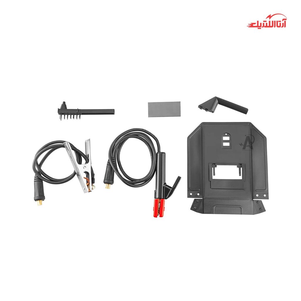 انبر جوش، کابل 1.8 متری، انبر اتصال، کابل 1.2 متری، فرچه سیمی، چکش، ماسک