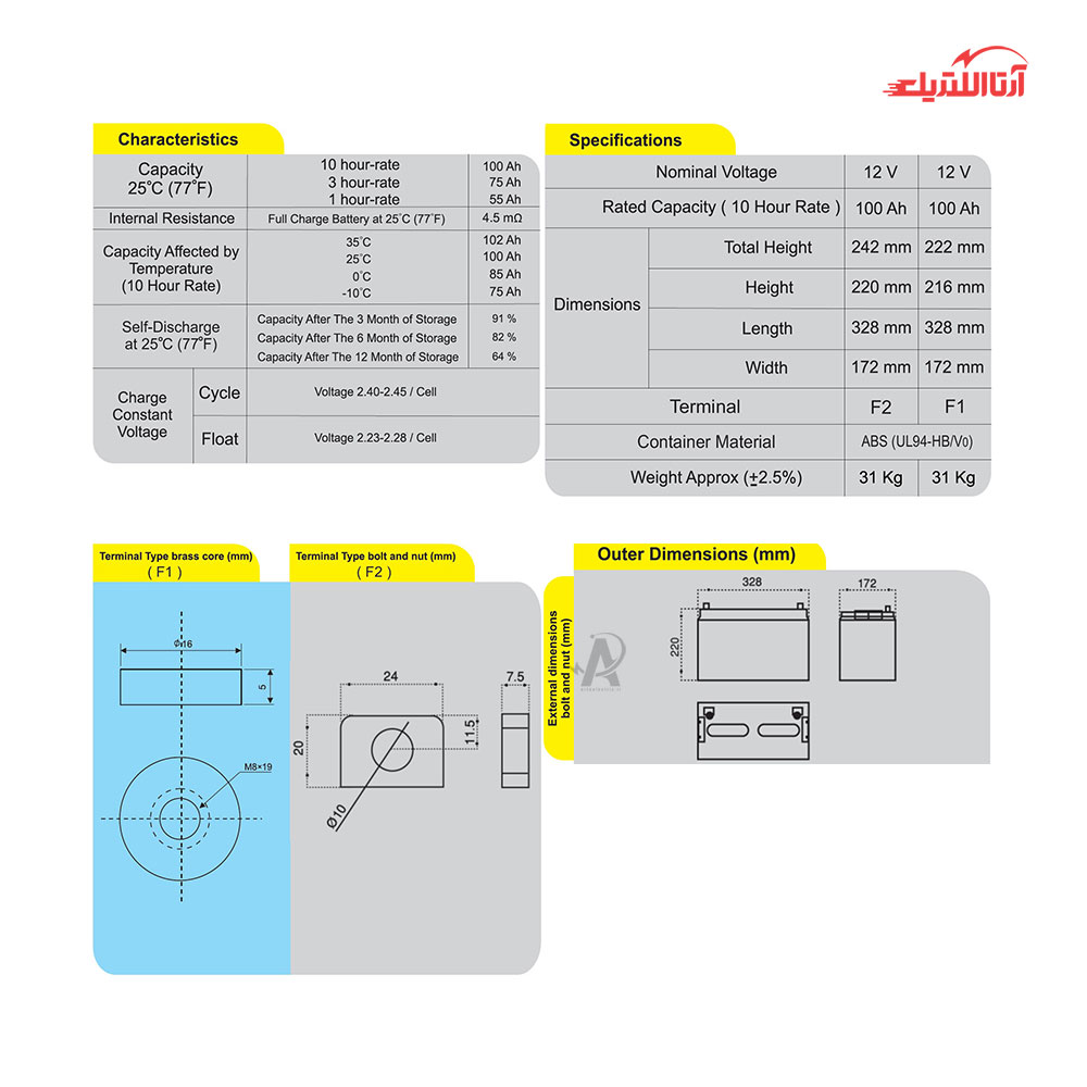 بررسی باتری یو پی اس 12 ولت 100 آمپر صبا باتری