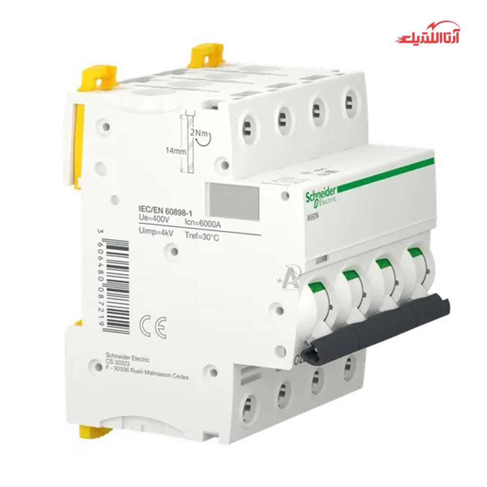 معرفی کلید مینیاتوری 4 پل 20 آمپر C20-6KA اشنایدر کد A9K24420