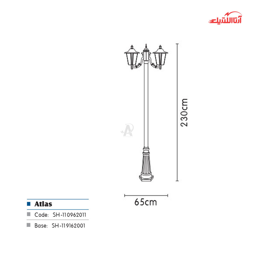 چراغ حیاطی ایستاده شب تاب مدل اطلس کد SH-109620110-191620010، یکی از نمونههای زیبا و باکیفیت چراغهای حیاطی شب تاب است که بدنهای از جنس آلومینیوم دایکاست دارد. نوع رنگ به کار رفته در تولید این محصول، رنگ پودری الکترواستاتیک بوده و در رنگهای مشکی، سفید و برنزی موجود است.