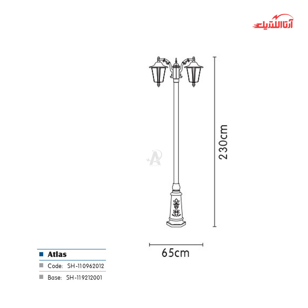 چراغ حیاطی ایستاده شب تاب مدل اطلس کد SH-109620120-192120010، یکی از نمونههای زیبا و باکیفیت چراغهای حیاطی شب تاب است که بدنهای از جنس آلومینیوم دایکاست دارد. نوع رنگ به کار رفته در تولید این محصول، رنگ پودری الکترواستاتیک بوده و در رنگهای مشکی، سفید و برنزی موجود است.
