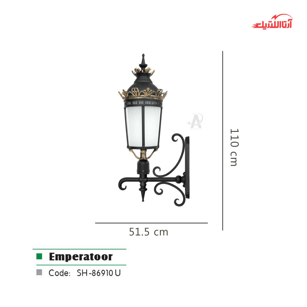 چراغ حیاطی دیواری شب تاب مدل امپراطور، یکی از نمونههای زیبا و باکیفیت چراغهای حیاطی شب تاب است که بدنهای از جنس آلومینیوم دایکاست دارد. نوع رنگ به کار رفته در تولید این محصول، رنگ پودری الکترواستاتیک بوده و در رنگهای مشکی، برنزی و سفید، موجود است.