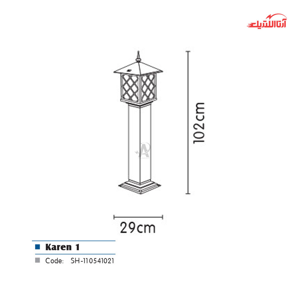 جنس انتخاب شده برای حباب چراغهای زمینی کارن 1، از PMMA است. سرپیچ این چراغها، اندازهای معمولی داشته و از نوع E27 است. همچنین درجه حفاظت چراغهای مدل کارن 1، IP44 میباشد. این محصول ابعادی معادل ۲۹*۱۰۲ سانتیمتر دارد. منبع تغذیه این چراغهای زمینی، برق شهری بوده و دارای ولتاژ ۲۲۰-۲۴۰ ولت و فرکانس ۵۰ هرتز است.