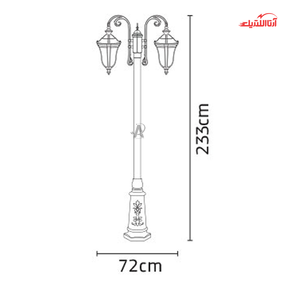 بررسی چراغ حیاطی ایستاده دو شاخه شب تاب مدل لاله کد SH-104420720-192120010