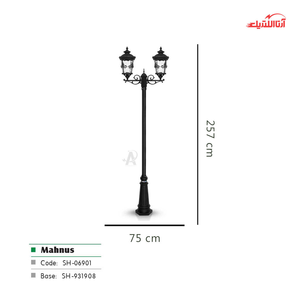 چراغ حیاطی ایستاده شب تاب مدل ماهنوس کد SH-106921110-192120010، یکی از نمونه‌های زیبا و باکیفیت چراغ‌های حیاطی شب تاب است که بدنه‌ای از جنس آلومینیوم دارد. نوع رنگ به کار رفته در تولید این محصول، رنگ پودری الکترواستاتیک بوده و در رنگ‌های مشکی، سفید و برنزی موجود است.