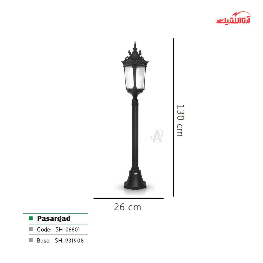 چراغ حیاطی زمینی شب تاب مدل پاسارگاد کد SH-106601010-191908000، یکی از نمونههای زیبا و باکیفیت چراغهای حیاطی شب تاب است که بدنهای از جنس آلومینیوم دایکاست دارد. نوع رنگ به کار رفته در تولید این محصول، رنگ پودری الکترواستاتیک بوده و در رنگهای مشکی، سفید و برنزی موجود است.