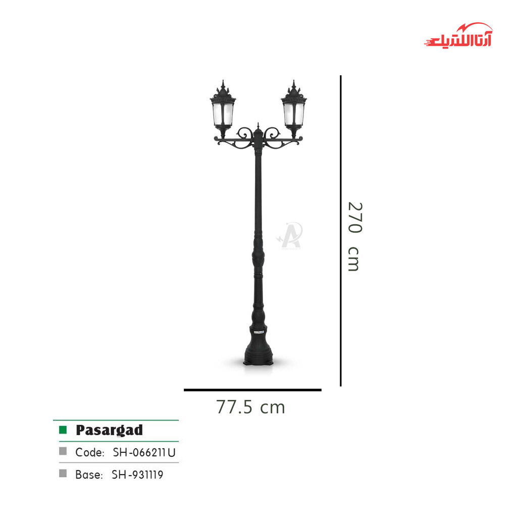 چراغ حیاطی ایستاده شب تاب مدل پاسارگاد کد SH-106621110-191119010، یکی از نمونههای زیبا و باکیفیت چراغهای حیاطی شب تاب است که بدنهای از جنس آلومینیوم دایکاست دارد. نوع رنگ به کار رفته در تولید این محصول، رنگ پودری الکترواستاتیک بوده و در رنگهای مشکی، سفید و برنزی موجود است.