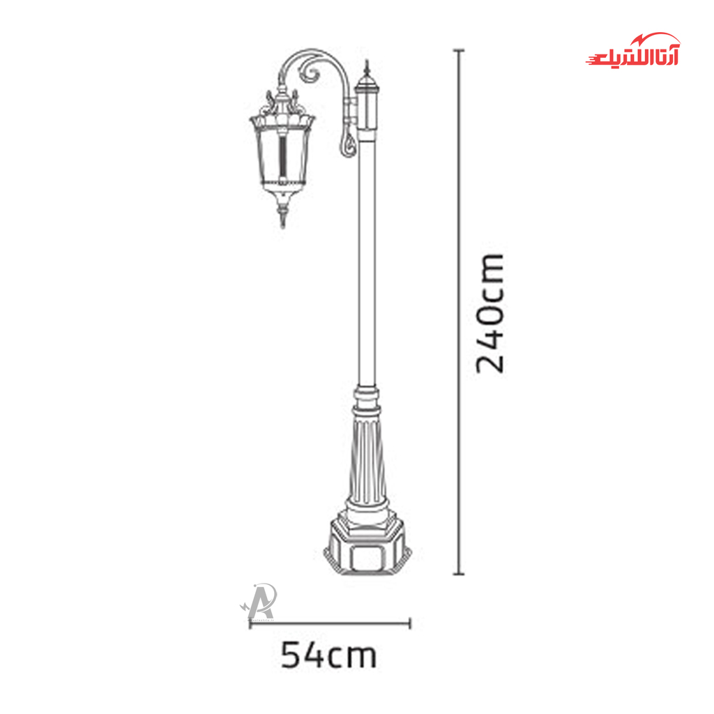 چراغ حیاطی ایستاده تک شاخه شب تاب مدل پاسارگاد کد SH-106611220-191720010