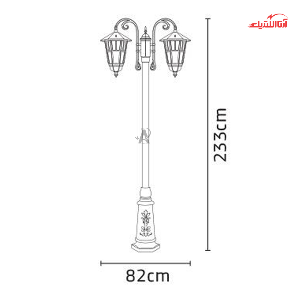 چراغ حیاطی ایستاده دو شاخه شب تاب مدل وندا کد SH-105920720-192120010