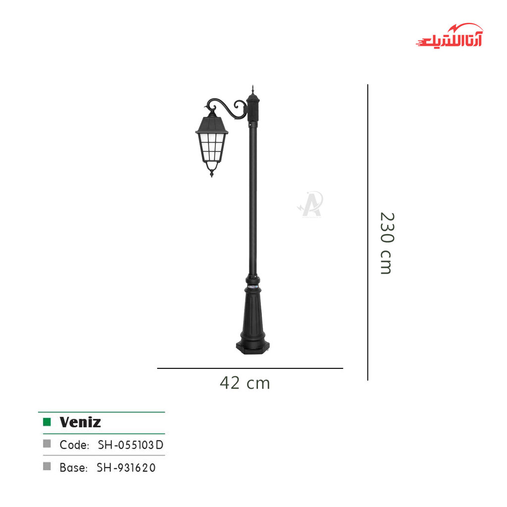 معرفی چراغ حیاطی ایستاده شب تاب مدل ونیز کد SH-105510320-191620010
