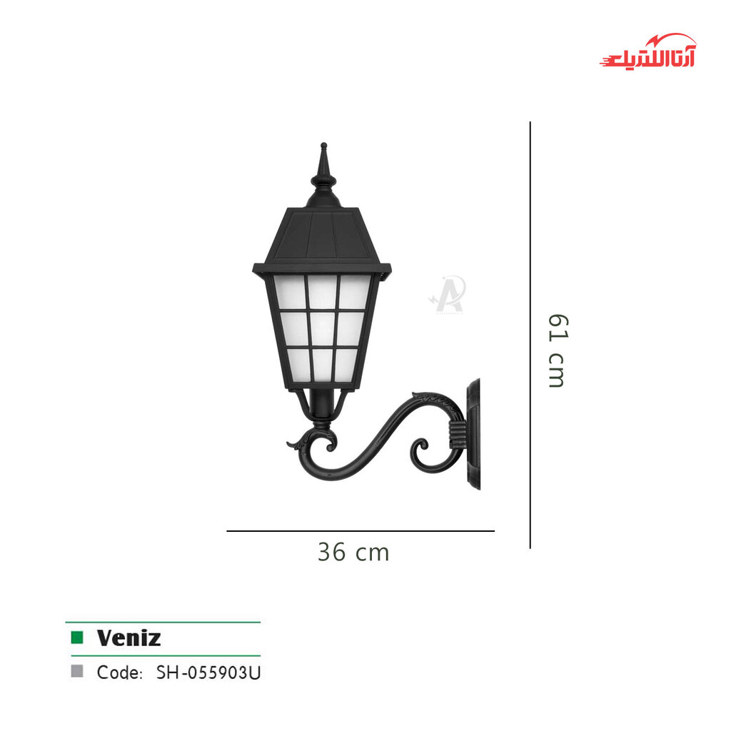 چراغ حیاطی دیواری شب تاب مدل ونیز، یکی از نمونههای زیبا و باکیفیت چراغهای حیاطی شب تاب است که بدنهای از جنس آلومینیوم دایکاست دارد. نوع رنگ به کار رفته در تولید این محصول، رنگ پودری الکترواستاتیک بوده و در رنگهای مشکی، برنزی، مسی و سفید، موجود است.