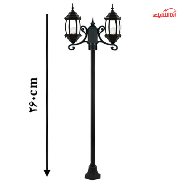 چراغ حیاطی ایستاده دو شاخه شفق با طول 2.6 متر مدل سورنا کد 2619
