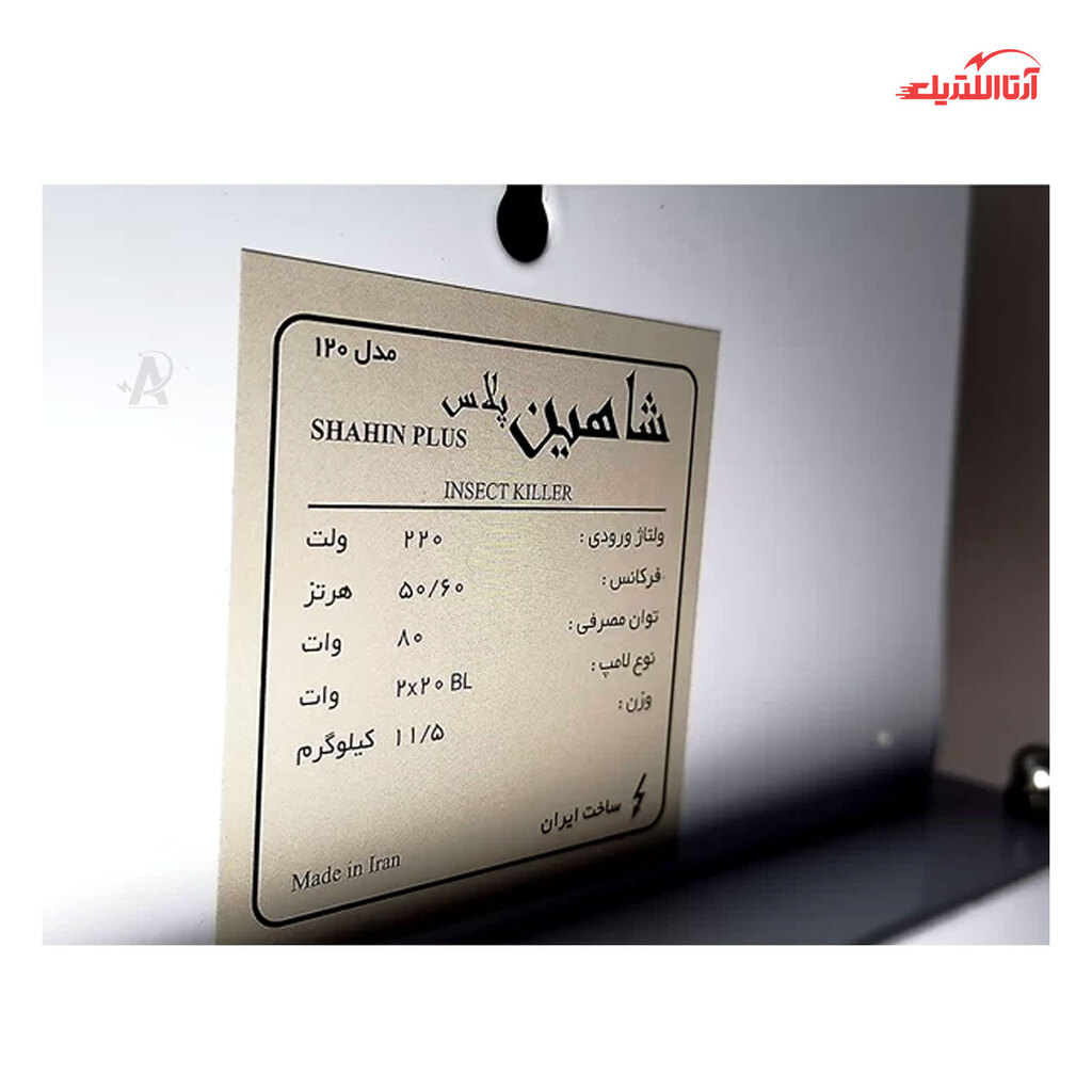 حشره کش برقی شاهین پلاس (شهباز) مدل 120، محصولی باکیفیت است که مناسب نصب در خانه‌ها و اداره‌هاست. این حشره کش به منظور کشتن حشرات پروازی مانند: مگس، زنبور، پشه، ملخ و… طراحی شده است. برای عملکرد بهتر دستگاه باید آن را در ارتفاع 3 الی 4 متری از سطح زمین نصب کنید یا روی میز بلندی قرار دهید. در زیر محصول یک سینی به منظور جمع‌آوری لاشه حشرات قرار داده شده است که حداقل هر دو ماه یکبار باید تخلیه شود.