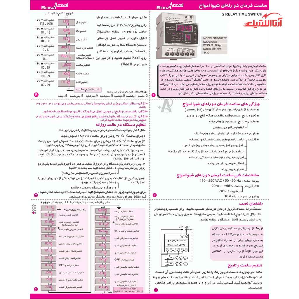 ساعت فرمان دو رله ای مدل STB-90P2R کد 12B8 شیوا امواج دستگاهی با ۹۰ برنامه قابل تنظیم بوده که هر برنامه، دارای یک زمان روشن و یک زمان خاموش است .