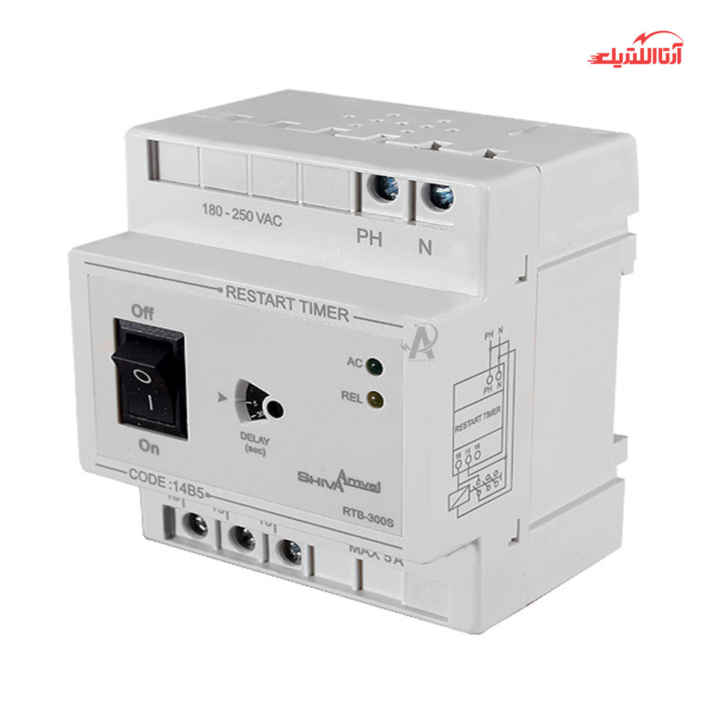 تایمر استارت مجدد مدل RTB-300S شیوا امواج کد 14B5 دستگاهی مطمئن برای محافظت و ایمنی در هنگام وصل مجدد برق است. رله خروجی این دستگاه با وصل برق ورودی با تأخیر قابل تنظیم از ۵ ثانیه تا ۵ دقیقه به مدت ۱ ثانیه وصل است. کنتاکت باز این رله در مسیر فرمانِ کنتاکتور اصلی (توزیع) که دارای مدار خودنگه دار است قرار می‌گیرد.