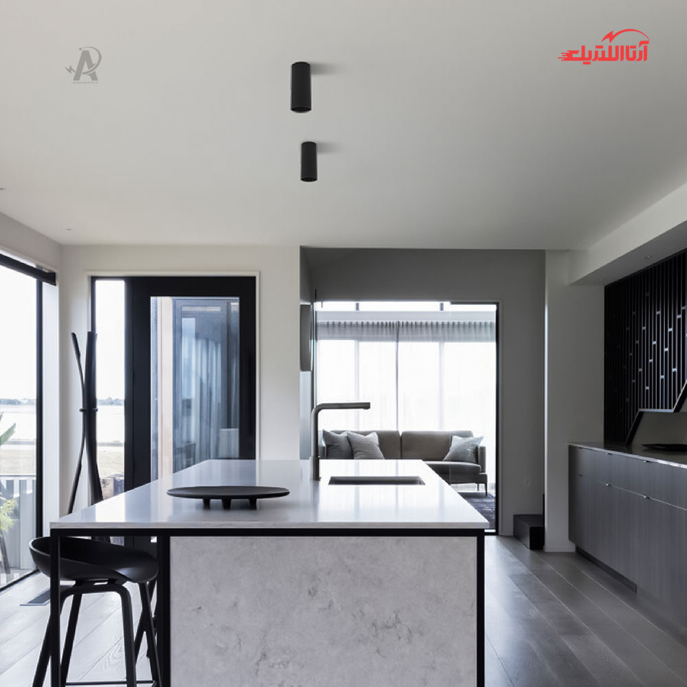 • طراحی استوانه‌ای روکار: نصب آسان با براکت، مناسب سقف‌های داخلی و فضای برجسته