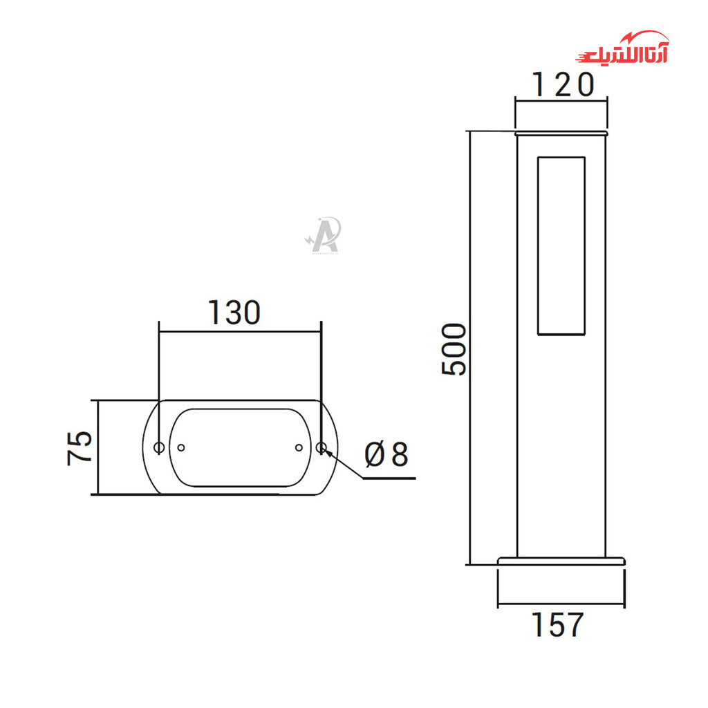 | ابعاد | 12 × 12 × 50 سانتیمتر |