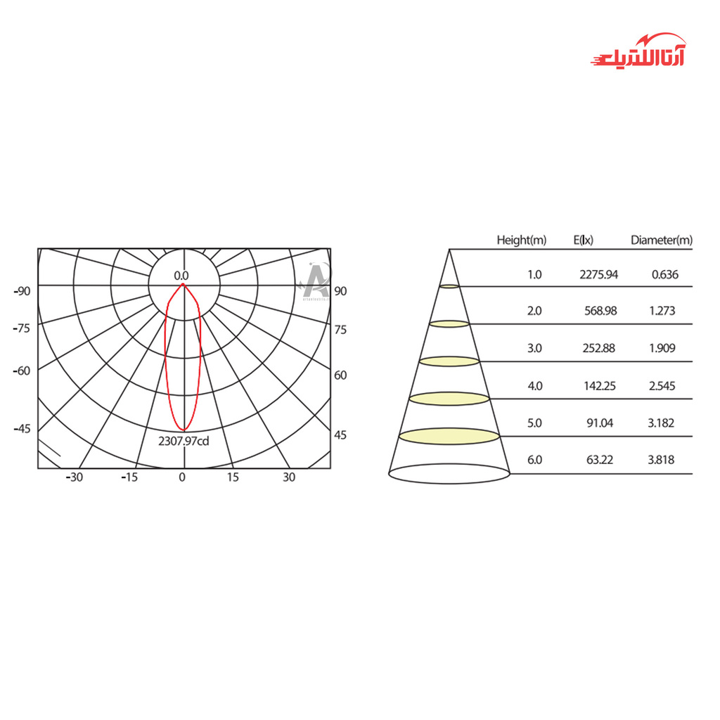 | زاویه پخش نور (درجه) | 31 |
