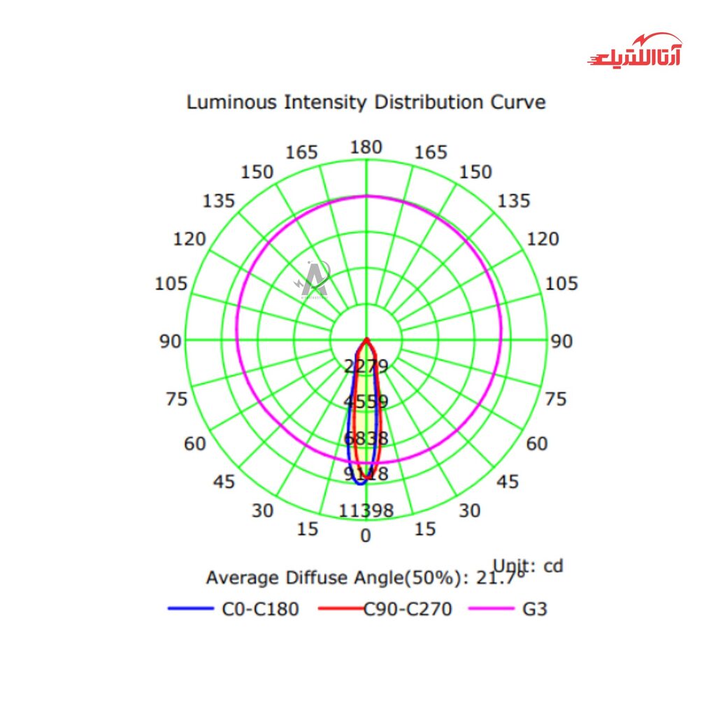 | زاویه پخش نور (درجه) | 26 |
