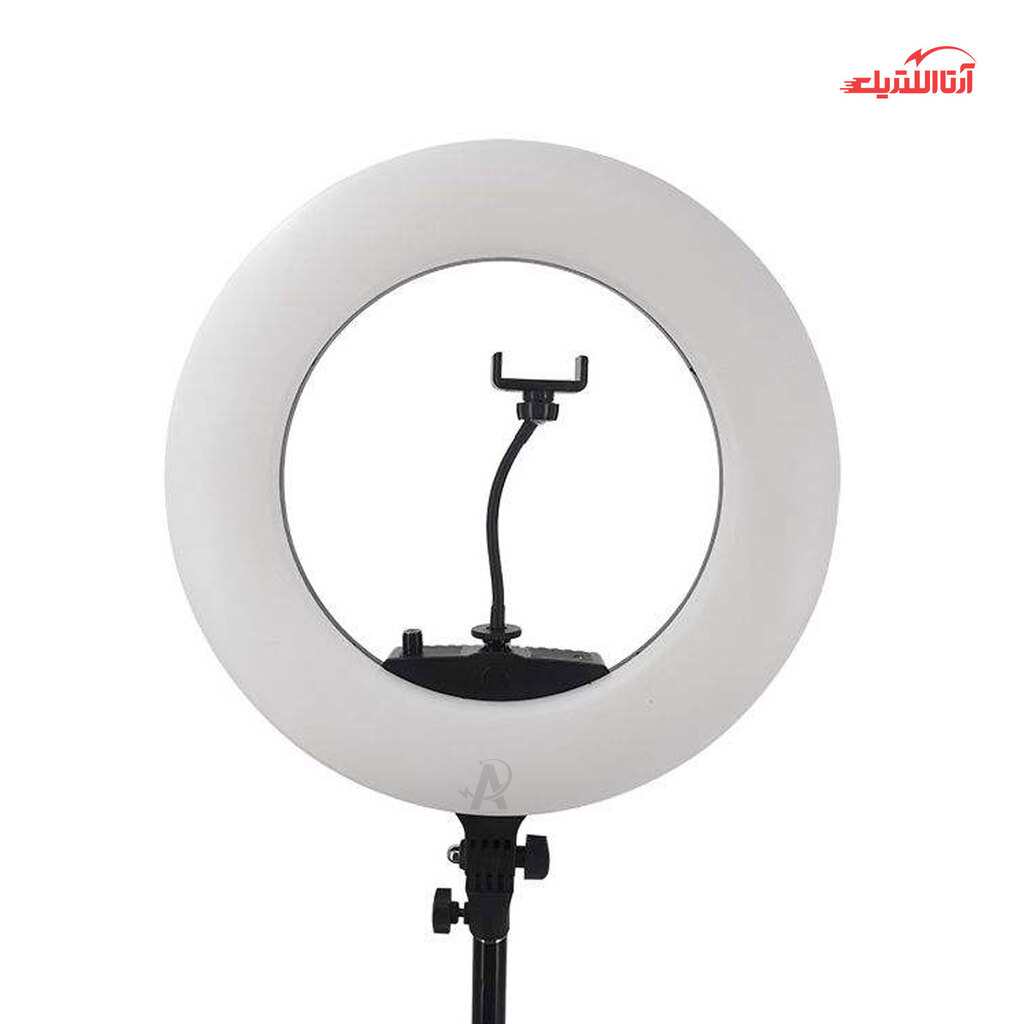 رینگ لایت مدل SY-3161 II دارای قطر حلقه 45 سانتیمتری است. توان این محصول 96 وات و میزان روشنایی آن 9600 لومن اندازه گیری شده است. برعکس بسیاری از محصولات بازار این مدل امکان نصب باتری دارد و بدون کابل برق میتوان آن را روشن کرد (باتری باید به صورت مجزا خریداری شود). محصول دارای یک آینه، آداپتور، ریموت کنترل و پایه نگهدارنده گوشی است. مانیتور پشت رینگ لایت این امکان را به کاربر میدهد تا بتواند میزان درجه رنگ نور، همچنین شدت نور و چند امکان دیگر را بر روی صفحه ببیند. زاویه پخش نور 60 درجهای و استفاده از 480 ال ای دی و وزن 4 کیلو گرمی این محصول از دیگر ویژگی های اصلی آن است. قیمت این رینگ لایت به نسبت کیفیت، میزان نور و طول عمرش، بسیار مقرون به صرفه است. شما میتوانید این محصول را با بهترین قیمت بازار از فروشگاه اینترنتی برق و روشنایی آرتا الکتریک واقع در لاله زار تهیه بفرمایید.