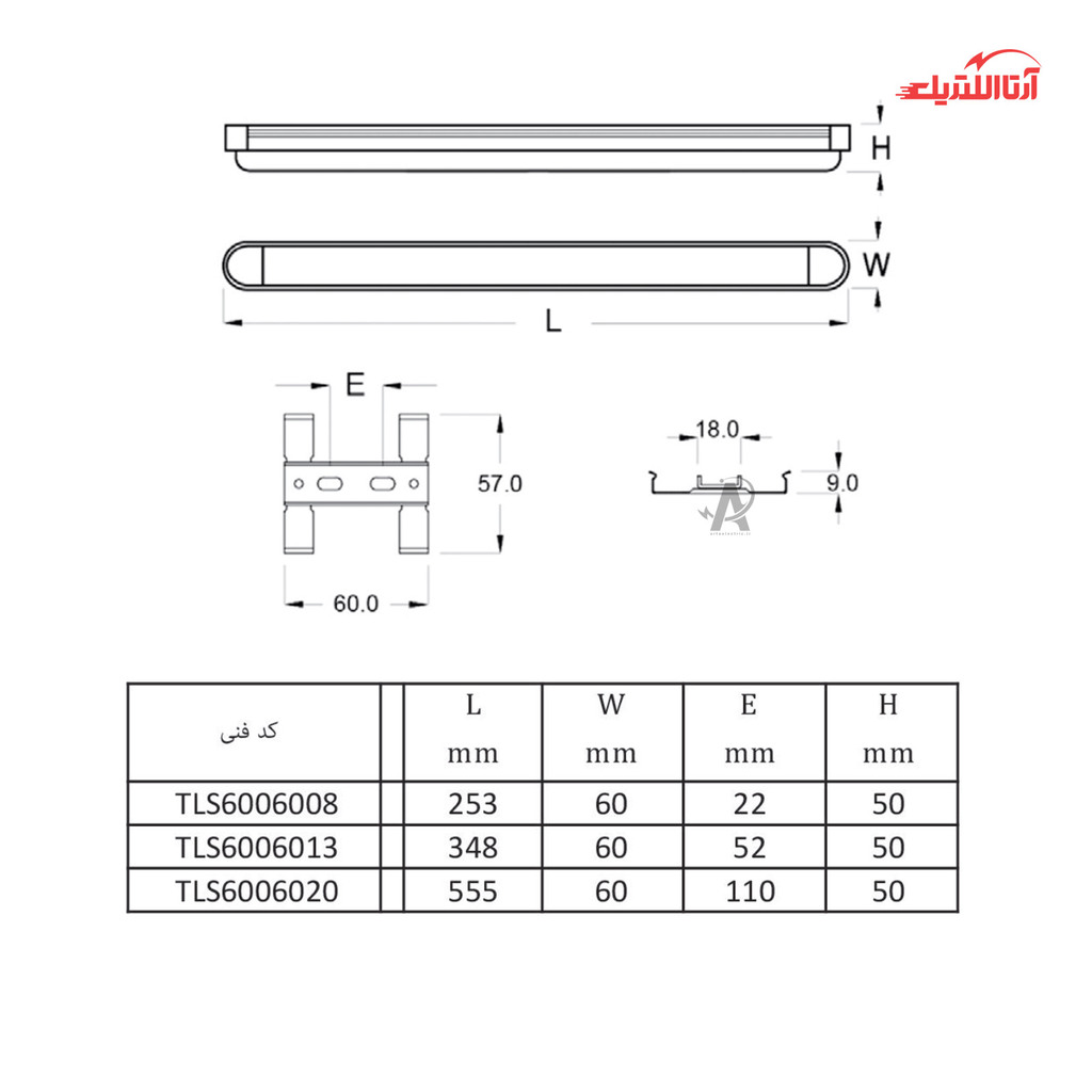 چراغ خطی روکار 13 وات تولید نور مدل آرانو کد TLS6006013