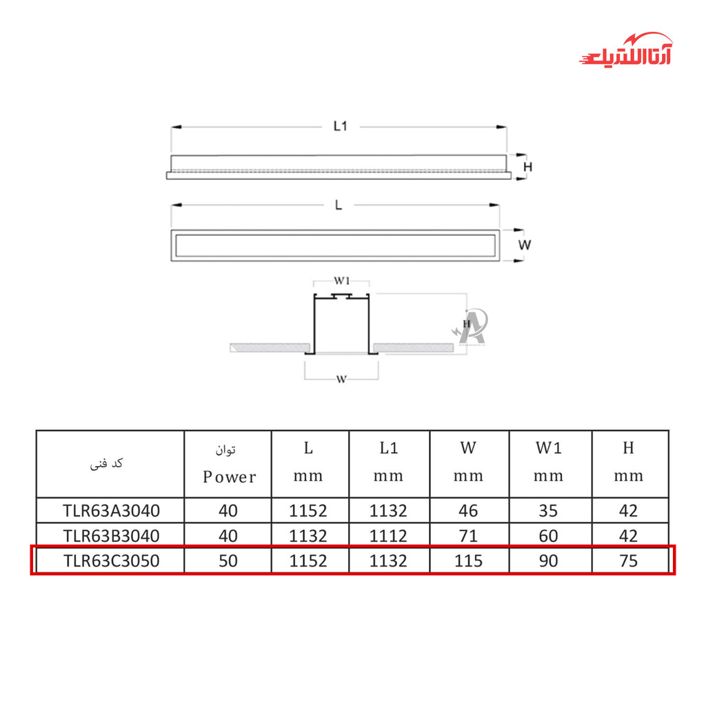 بررسی چراغ خطی توکار 50 وات تولید نور مدل لوین کد TLR63C3050