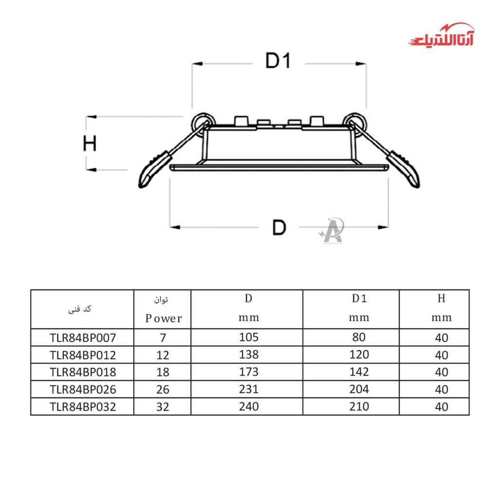 چراغ سقفی توکار 32 وات تولید نور مدل مونلایت گرد کد TLR84BP032