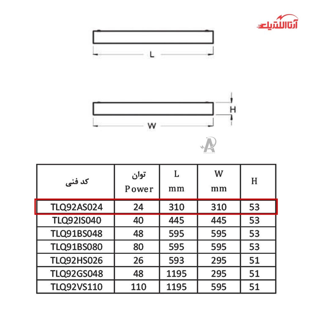 پنل سقفی روکار 24 وات 30 در 30 تولید نور مدل مونلایت کد TLQ92AS024