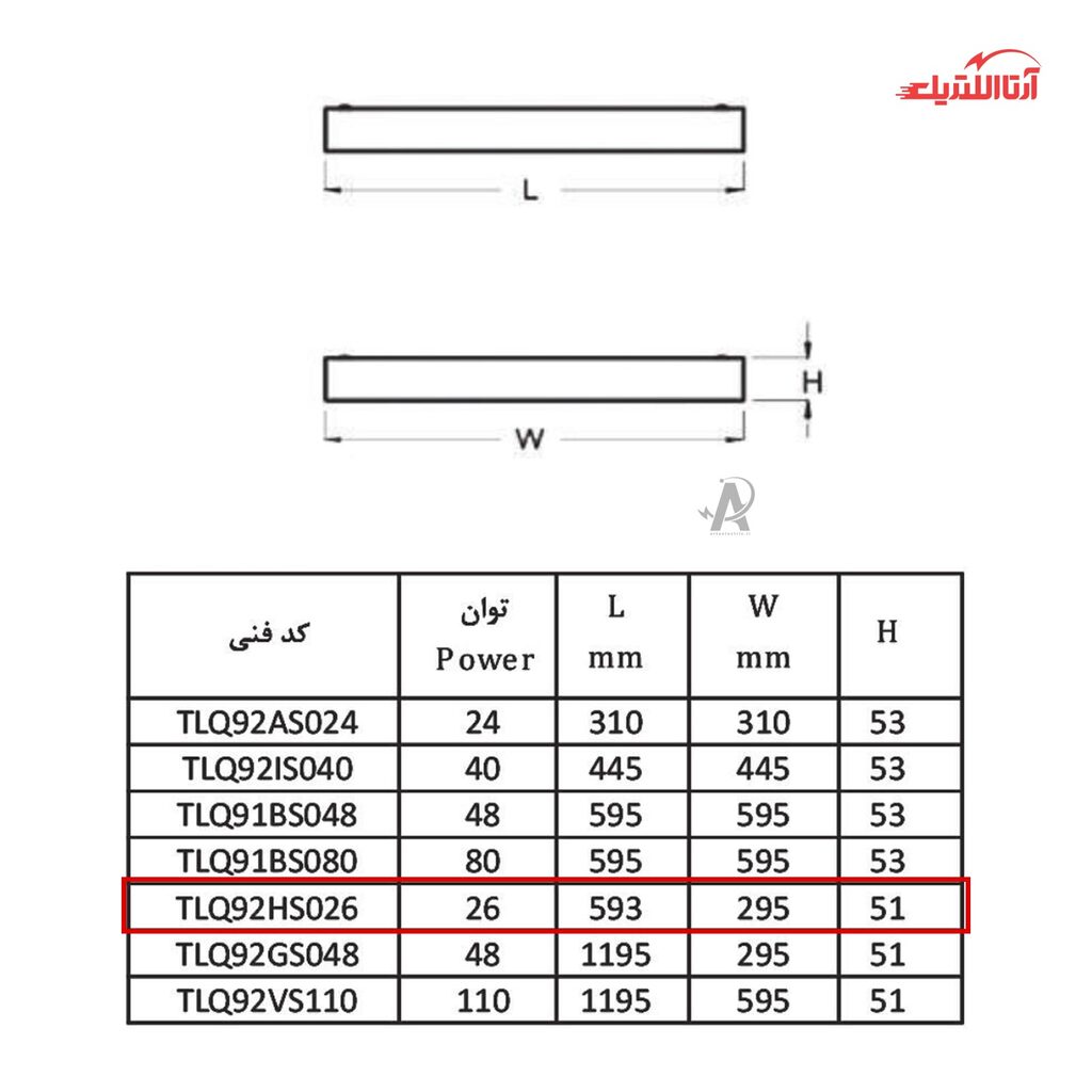 | شکل ظاهری چراغ | مستطیل |