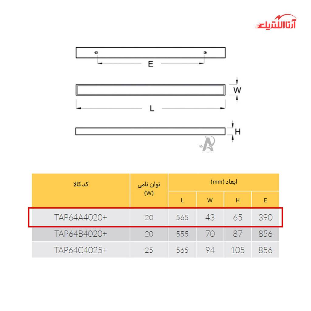 بررسی چراغ خطی توکار 20 وات تولید نور مدل پارکولایت پلاس کد TAP64A4020+